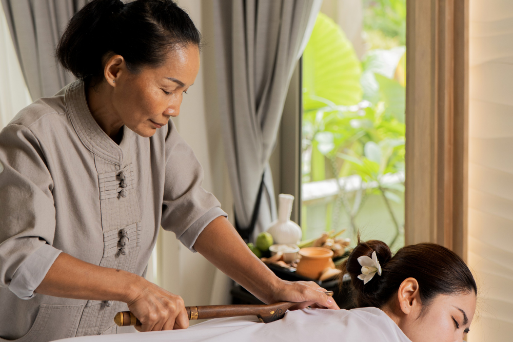 Experience a unique fusion of ancient Thai wisdom and holistic therapy, crafted by Sara, a seasoned practitioner with over 20 years of experience.Her signature “Sarika Stick Massage” blends deep pressure point therapy along meridian lines with Thai stretching techniques.This treatment helps release deep muscle tension, improve energy flow, and accelerate physical recovery.